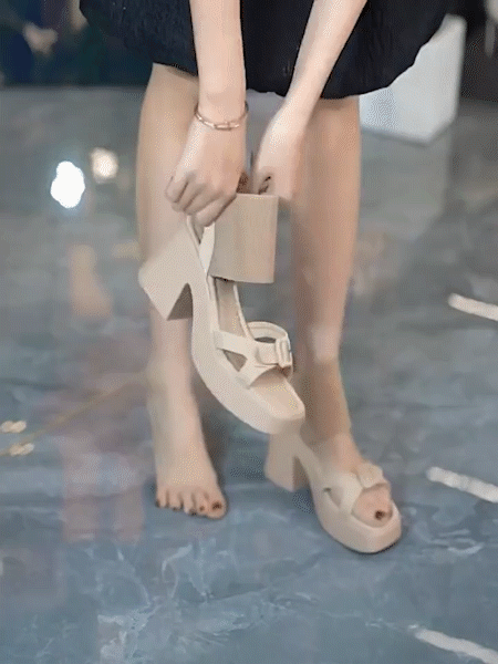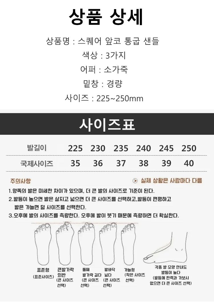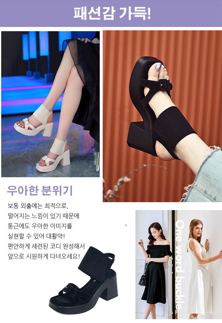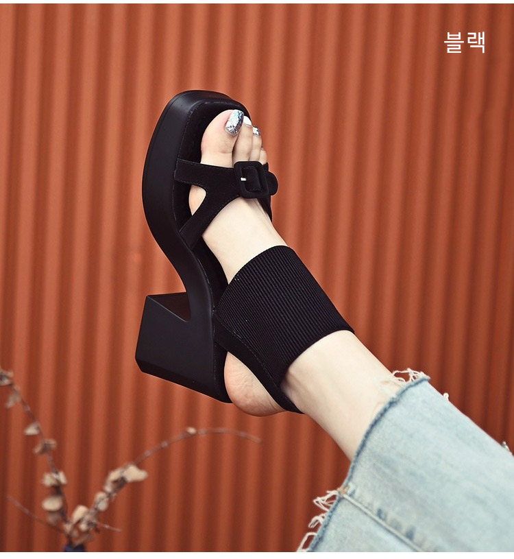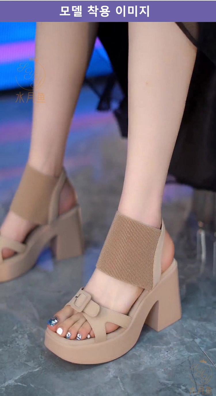스퀘어 앞코 통굽 샌들