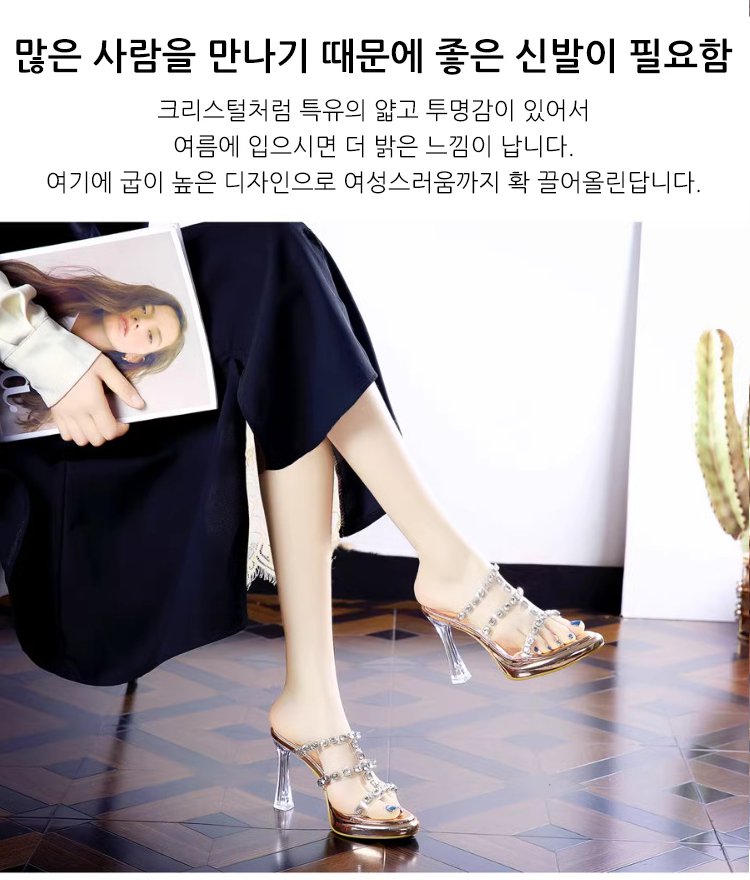 큐빅 하이힐 슬리퍼